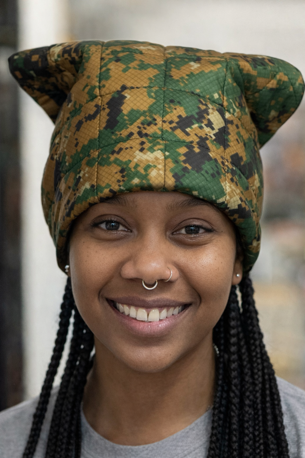 Durable quilted camouflage fabric, this piece provides lightweight insulation, warmth, and comfort without bulk. Designed and sewn in-house, it reflects our commitment to quality craftsmanship and thoughtful design.