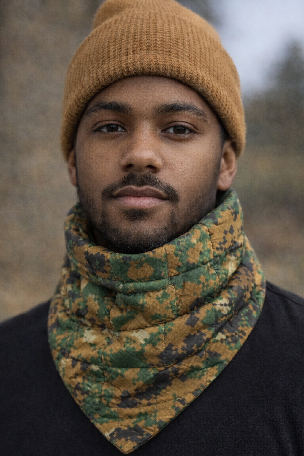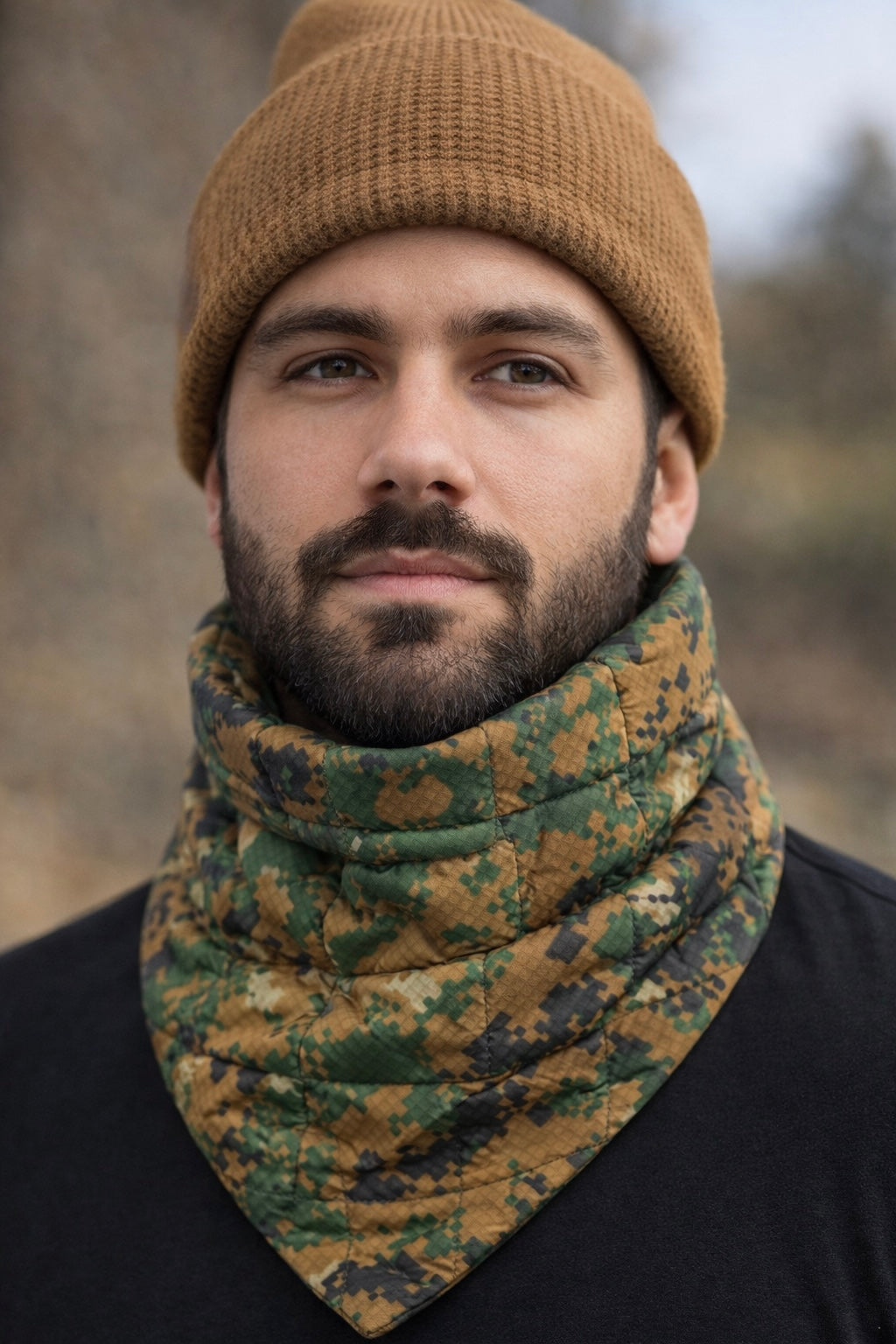 Stay warm and stylish with our Quilted Camo Head Scarf / Neck Gaiter, a versatile winter scarf and head wrap designed for everyday wear. This multi-use quilted camo scarf functions as a head scarf, neck gaiter, or winter scarf, making it a must-have cold-weather accessory.
